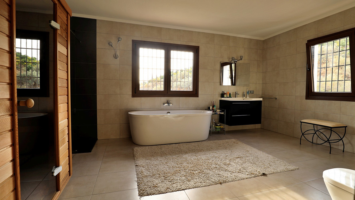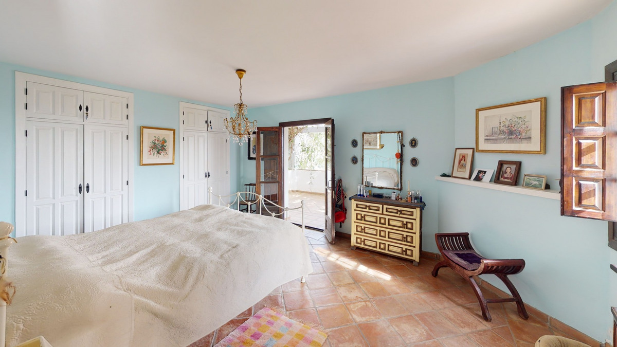 Are you looking for an oasis in harmony with nature? A place of peace and relaxation, where time runs a little slower? Yes?! Then we would like to show you this fantastic villa, in the mountains of Torrox. It offers an imposing, grand main house, a separate, small guest house and a pool, as well as 5,569 m2 of land, which is predominantly flat and thus offers countless possibilities. The layout of the property makes it possible to use the main house as two independent living units, with separate entrances. This fabulous property is perfect as a multi-family home, B&B or as an investment opportunity for a yoga center, event location, dance school or meditation temple.... An almost completely paved driveway leads you to a concrete parking area, which is partially covered. On this level is the charming guest cottage with its own covered terrace. It is equipped with a cozy, open living/dining area with a bed, a kitchen and a bathroom. The fireplace provides comfortable warmth in the cooler months. A driveway, as well as stairs, lead to the lower level. Another heavy wooden door with an iron horse door knocker grants entry into the spacious, imposing living area with fireplace, of the first part of the house. To the right is a guest toilet. Next to this is a room which is currently used as an office/library. It can also be heated to a comfortable temperature in the cooler seasons with the fireplace. We have adjacent a small, glazed room from which you can enjoy the view of the surrounding countryside. The large terrace at the front of the house offers breathtaking views of the famous white village of Frigiliana and the Sierra de Tejada in the background. Thanks to the hillside location, the hollow space under this terrace can still be closed and create more living space, if needed. From the living room, also with access to the terrace, one enters the spacious open kitchen with dining area. The interplay of traditional and modern has been perfectly achieved here. A glass patio door leads to the beautiful u-shaped and typical Andalusian courtyard with a fountain. On the second floor of the house there are three bedrooms and two bathrooms. The master bedroom has a large, modern bathroom with its own sauna, as well as a bathtub and shower. From two of the bedrooms there is access to an enchanted u-shaped balcony with views down into the Andalusian courtyard. Its wooden beams and plantings make it feel like you've stepped into another era. A corridor leads from this balcony to the second part of the house. On the second floor there is a bedroom with another fireplace, called the Sunroom because of its wall color. A staircase leads down to a huge open space with a large flat skylight that lets in natural light. The space can be used for a wide variety of possibilities. As a dance studio, atelier, or conference room. A feel-good temperature can also be created here with a great fireplace. On this level we also have a large heavy wooden door, the separate entrance to this part of the house. Right next to the entrance area there is a fully equipped bathroom. Through an open arch you enter a living area with a small, charming kitchen. Through almost floor-to-ceiling windows, you look out onto an idyllic pond and out into the countryside. There is another bathroom and two bedrooms, both with access to the outdoor area. The outdoor area includes a pool, many terraces with seating, a small vegetable garden and some olive trees. The bodega, or wine cellar, adds the finishing touches to the mansion and guarantees the right temperature for your wine. We are pleased to be able to present this dream property to you soon, either personally or via virtual viewing. Because this world, it is unique - just like our Axarquía. In Andalusia. On the Costa del Sol. Here, on the sunny side of life...