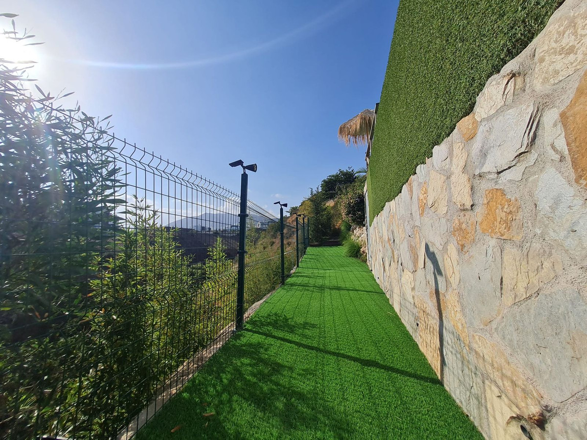 Spacious semi-detached house located in the prestigious Reserva del Higuerón private complex, on the border between Benalmádena and Fuengirola, a step away from all services and Carvajal beach with its beautiful promenade and restaurants. The suburban train station is 100 meters away and there is a free bus service for the residents of the complex.