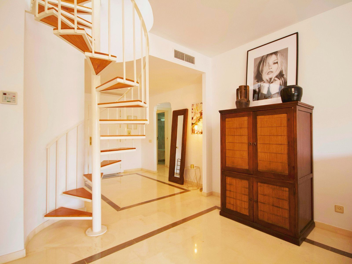 Spacious Duplex Living: The penthouse boasts a bright, well-distributed layout and features a large private rooftop solarium. This expansive terrace is ideal for sunbathing, creating a stylish chill-out lounge, or enjoying the coastal sea breezes and views. The location is strategically positioned between Marbella and Estepona, offering quick access to Puerto Banús, San Pedro, international schools, and essential services.