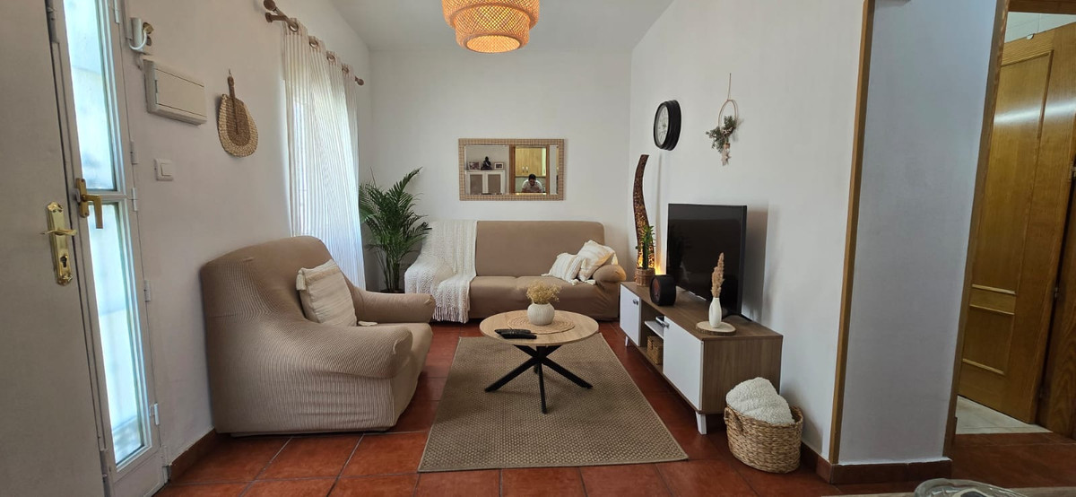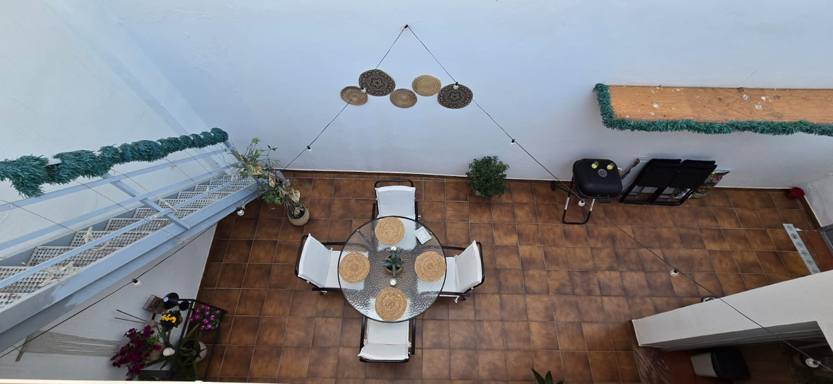 The house has three spacious bedrooms and a full bathroom, distributed over a built area of 65 m². The living room is bright and comfortable, with individual air conditioning units and direct access to a 30 m² private terrace, ideal for enjoying the Costa del Sol climate. In addition, it has a spectacular 65 m² private solarium terrace with urban views and the possibility of building up to three additional floors, which adds great potential for expansion.