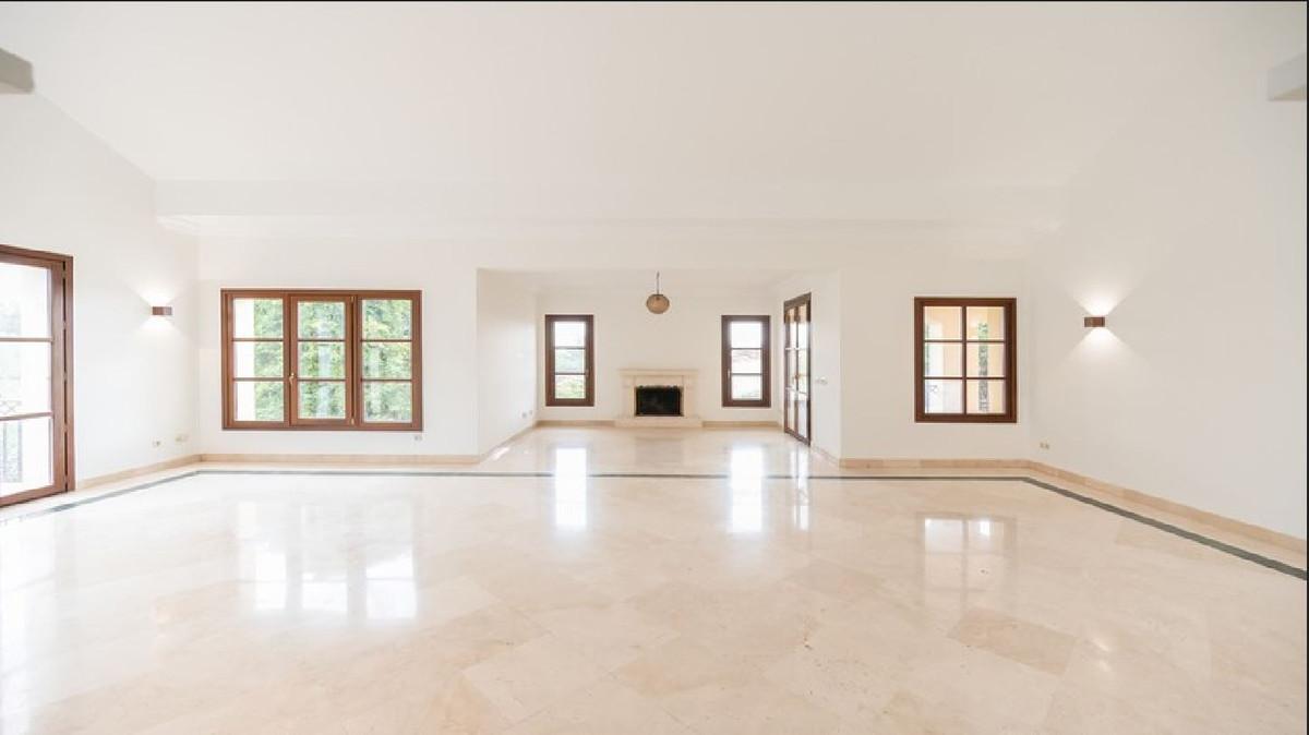 This classic-style house is located in a group of villas with private access in the heart of the Golf Valley in Nueva Andalucía. The villa is distributed on two large floors. The main entrance gives access to a large living room with very bright fireplace from which you can enjoy wonderful panoramic views of La Concha. The living-dining room has direct access to the garden, the pool and an extensive garden with a barbecue area that allows you to enjoy the maximum leisure time outdoors.