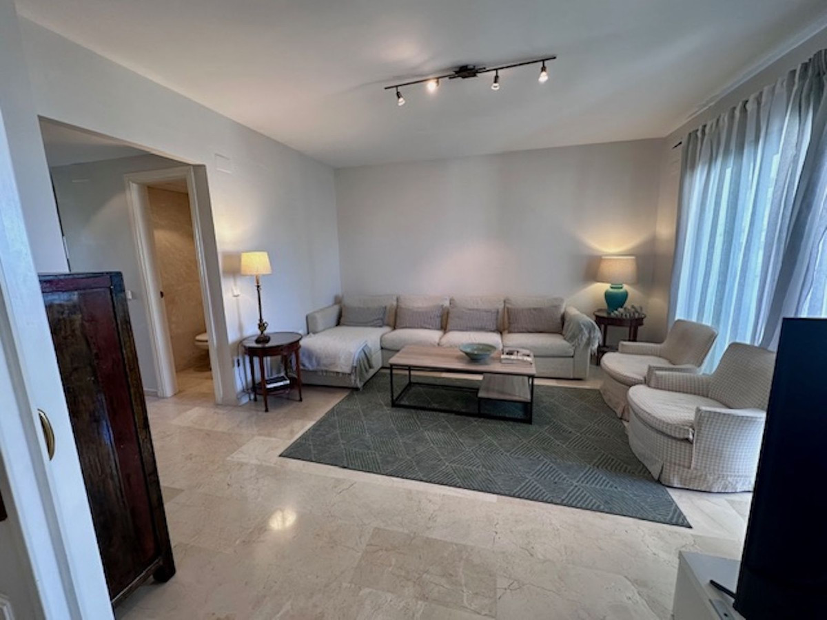The living room opens onto a magnificent terrace, which is fully covered with awnings for winter use and offers stunning views of the development's pool and the sea, as this development is located on the beachfront.