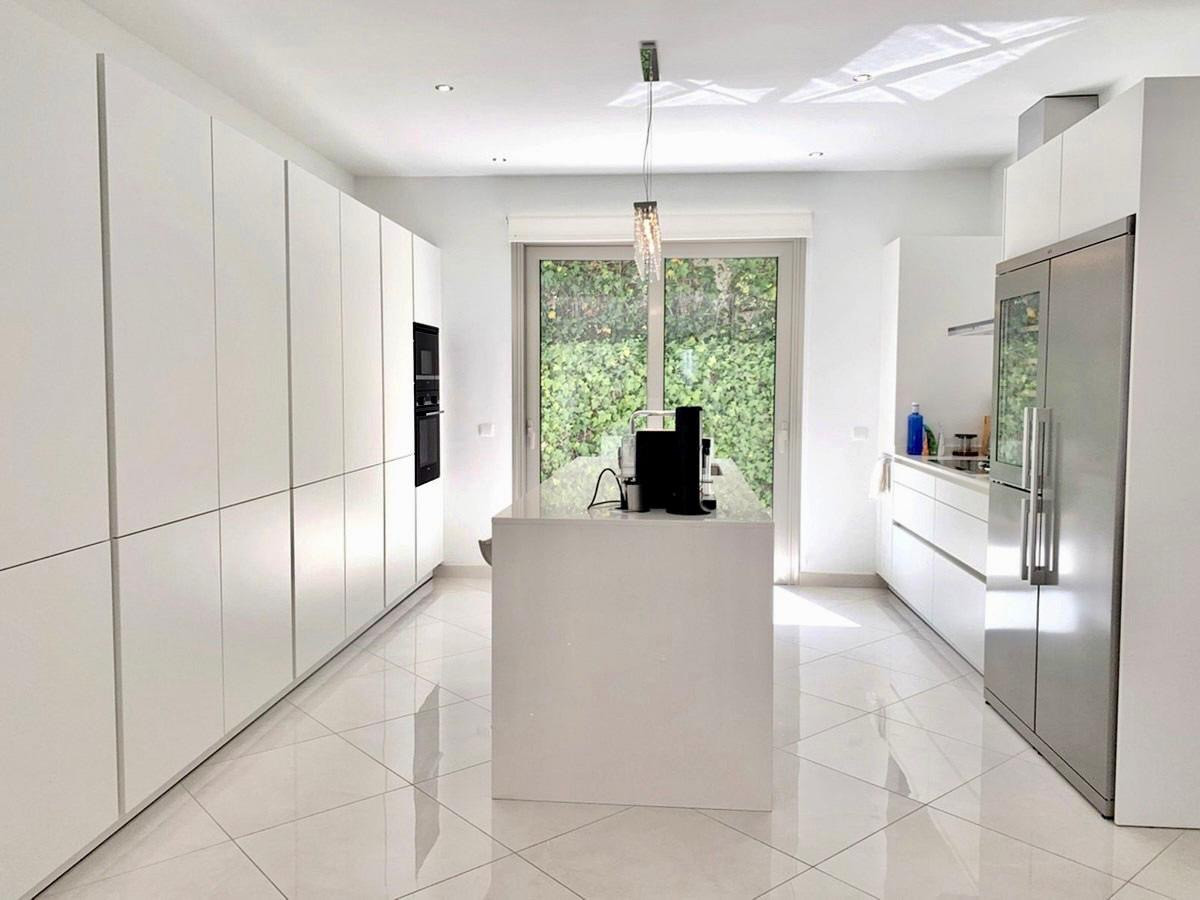 The semi-basement includes a garage with space for up to three cars, along with a service area and storage. There is also private access from the street, and architectural plans are available to convert part of this space into a separate guest apartment, should the new owners wish to expand. A built-in lift connects all floors of the property, ensuring full accessibility.