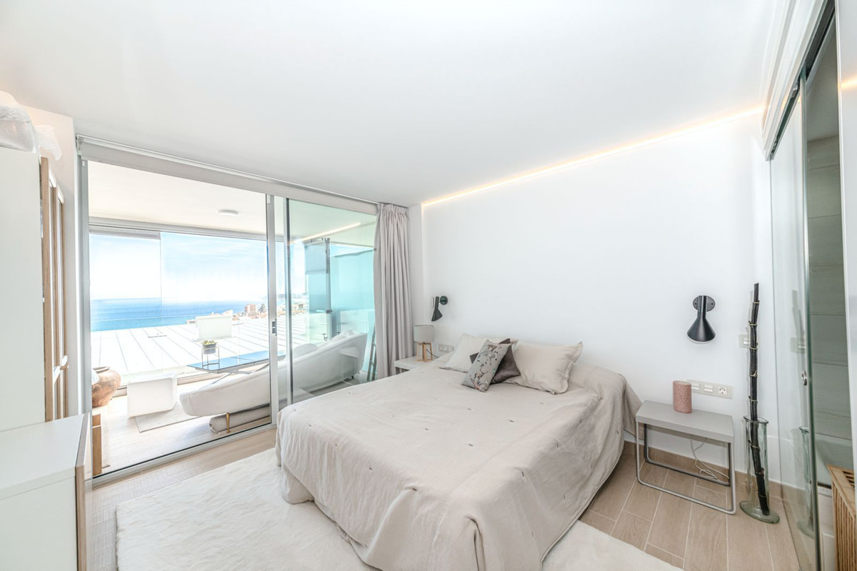 Discover the Mediterranean lifestyle in this magnificent 3-bedroom, 2-bathroom apartment, located in the exclusive area of El Higuerón. This property offers exceptional panoramic views of the Mediterranean Sea that you can enjoy from its spacious 32 m² terrace. Furthermore, the sea view will always remain unobstructed, as no construction is permitted in front, guaranteeing a magnificent and permanent perspective.