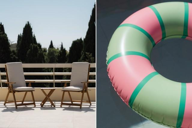 | Uitzicht op tuin en zwembad | |