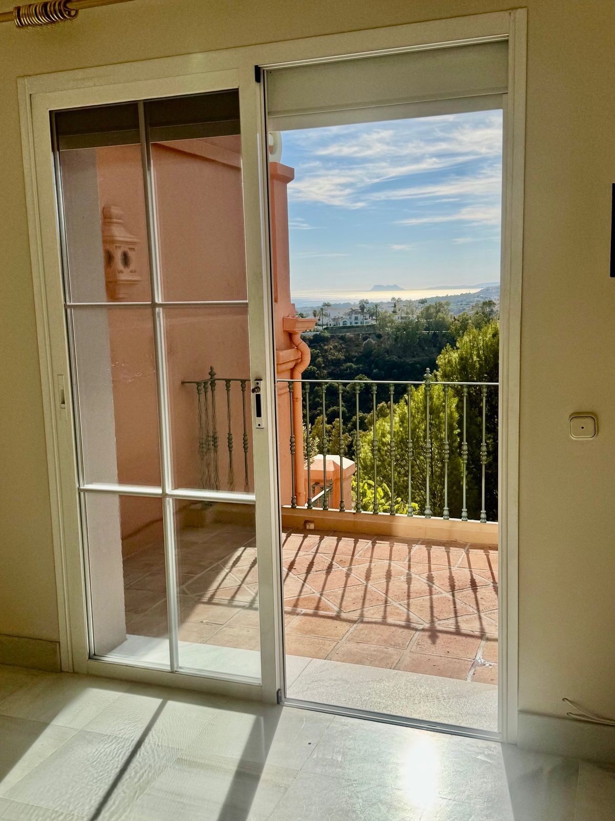 As you approach the entrance, you go up a few steps that lead to the front door. Upon entering, you’ll be greeted by a spacious and light-filled dining and living area, accentuated by floor-to-ceiling windows that create an inviting atmosphere. Step outside to your expansive 22m² covered terrace, which features glass curtains, allowing you to enjoy the stunning panoramic views of the area of Benahavís, the majestic nearby mountains, the iconic Rock of Gibraltar, and the sparkling sea. The beautiful open South-West views provide a sense of comfort all year round to the mind and soul; on clear days, you can even catch a glimpse of the African coast and the Atlas Mountains—truly breathtaking! The sunsets from here are spectacular.