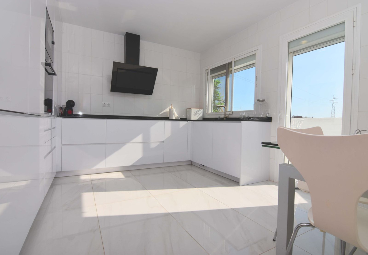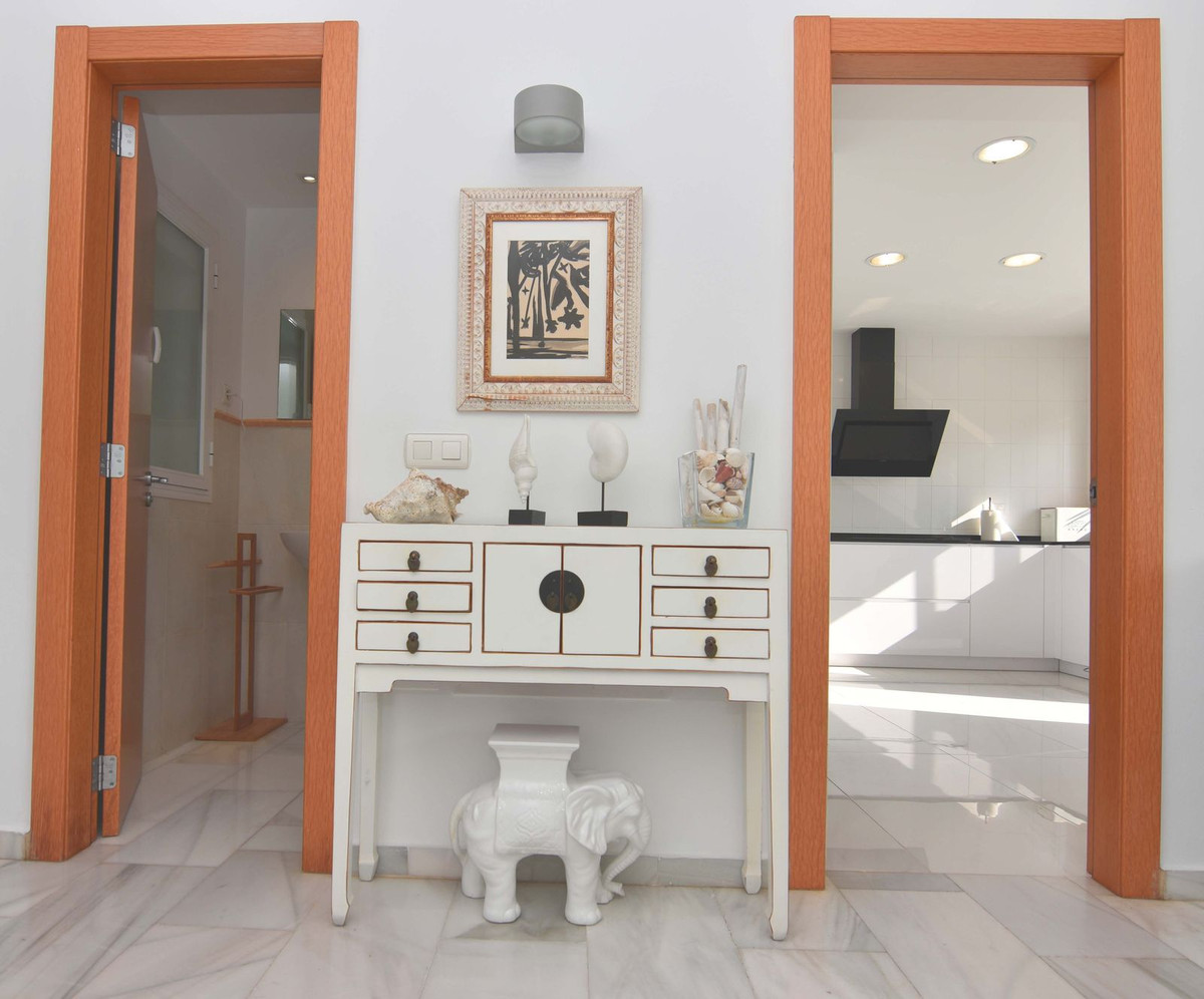 Spacious semi-detached house located in the prestigious Reserva del Higuerón private complex, on the border between Benalmádena and Fuengirola, a step away from all services and Carvajal beach with its beautiful promenade and restaurants. The suburban train station is 100 meters away and there is a free bus service for the residents of the complex.