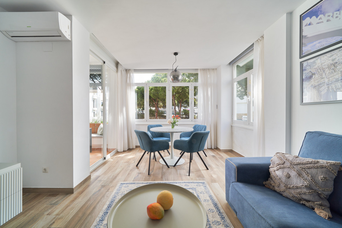 Just moments from the shoreline, this elegant 2-bedroom, 2-bathroom apartment is nestled within the sought-after gated community of Jardines de las Golondrinas, just 200 metres from one of Marbella’s finest sandy beaches. Set in the prestigious area of Elviria, and adjacent to the grounds of the iconic Don Carlos Hotel, the apartment offers a refined blend of comfort, privacy, and Mediterranean charm.