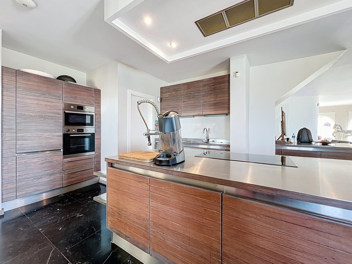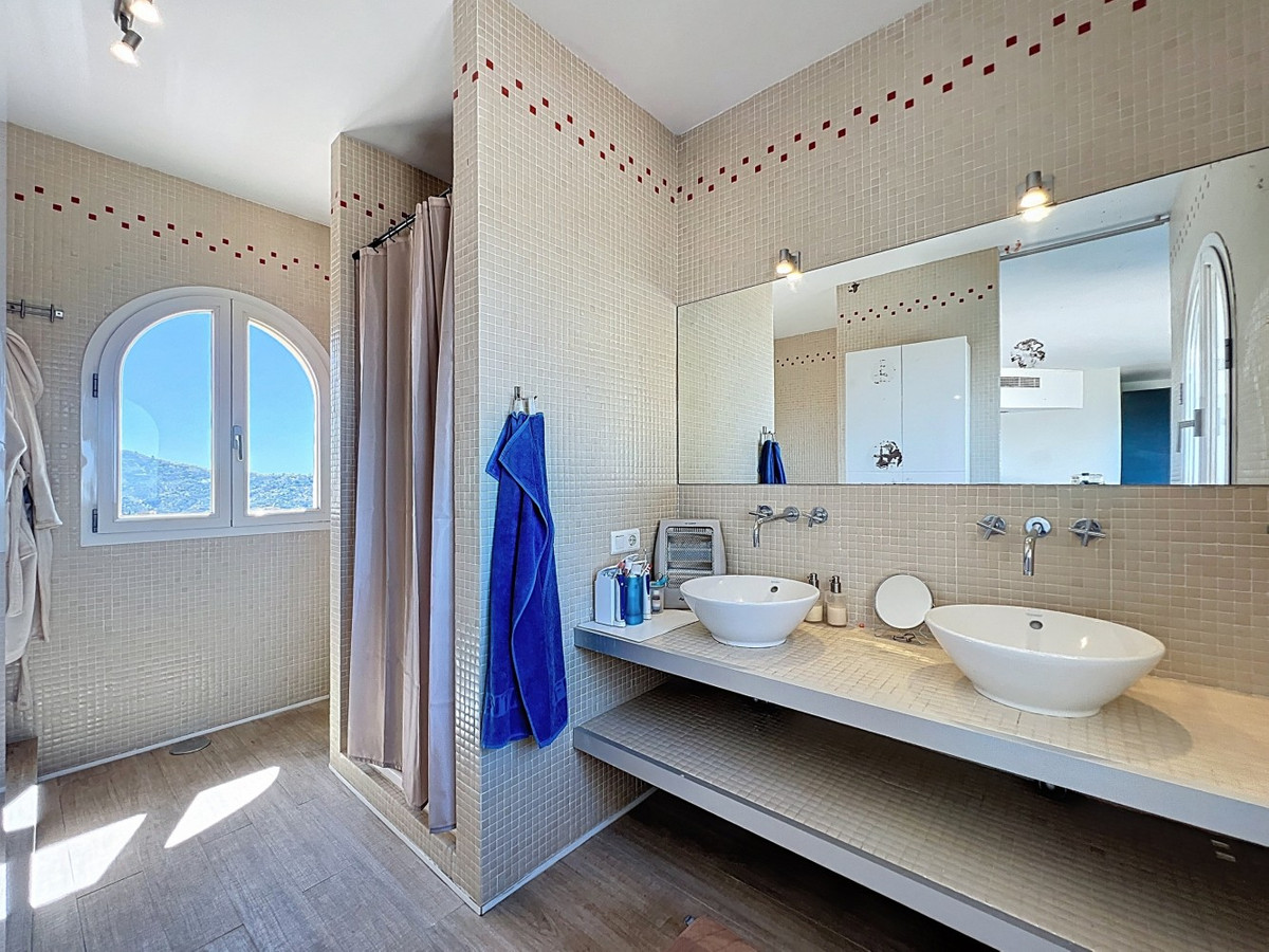 Imagine waking up each day to the soothing embrace of the Mediterranean in this exquisite villa. A true architectural masterpiece, this home offers an unparalleled lifestyle, seamlessly combining spacious interiors with awe-inspiring vistas that stretch all the way to the horizon. The living area welcomes you with an abundance of natural light, thanks to floor-to-ceiling sliding glass doors that perfectly frame the mesmerizing views of the azure sea. The open-plan design creates an ideal flow for both intimate gatherings and grand entertaining, blurring the lines between indoor luxury and outdoor paradise. For the culinary enthusiast, the gourmet kitchen is a dream come true, equipped with state-of-the-art appliances and ample space for creating memorable meals. Dine al fresco on the expansive terrace, where the gentle sea breeze enhances every moment. The lavish master suite, spanning 32.5 m2, offers a tranquil retreat with panoramic ocean views. Start your day in the spa-like bathroom, a true testament to luxury and comfort. The private balcony ideal for sipping morning coffee or enjoying an evening cocktail as you watch the sun dip into the sea. At the outside, the terracotta-tiled outdoor terrace is your personal oasis. Bask in the warm Spanish sun, host unforgettable parties, or simply lose yourself in the mesmerizing views of the coastline. Beyond the beauty, this villa offers a rare opportunity for those looking to start a business, like a B&B. With 4 rentable rooms, each with its own bathroom and entrance, the property has already been successfully operated as a B&B, receiving only glowing reviews. In addition to the rental rooms, theres a private bedroom on the first floor with its own bathroom, and another bedroom with a bathroom in the basement. The fully equipped kitchen inside and the wonderful outdoor kitchen provide all the necessary amenities for running a successful business, while the large underground garage offers plenty of space for storage. Located in Algarrobo, Málaga, this property ensures easy access to world-class amenities, pristine beaches, and rich cultural experiences, all while offering the perfect setting to indulge in Mediterranean living. Whether you're looking for a luxury family home, a business opportunity, or simply a slice of paradise, this villa delivers on every front. This is more than just a home; its a lifestyle. Embrace the pinnacle of Mediterranean living in this extraordinary villayour dream of owning a piece of paradise is now within reach. Dont miss the chance to elevate your life to new heights of luxury, beauty, and opportunity. We are pleased to be able to present this dream property to you soon, either personally or via virtual viewing. Because this world, it is unique - just like our Axarquía. In Andalusia. On the Costa del Sol. Here, on the sunny side of life...